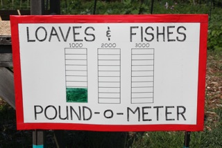 “Hey, Team!” wrote Master Gardener Ron Ory, first thing Wednesday morning as thunder roared in the distance. “Remember a couple months back (about the end of June), when we began to harvest? We barely registered on the ‘Pound-O-Meter’.”